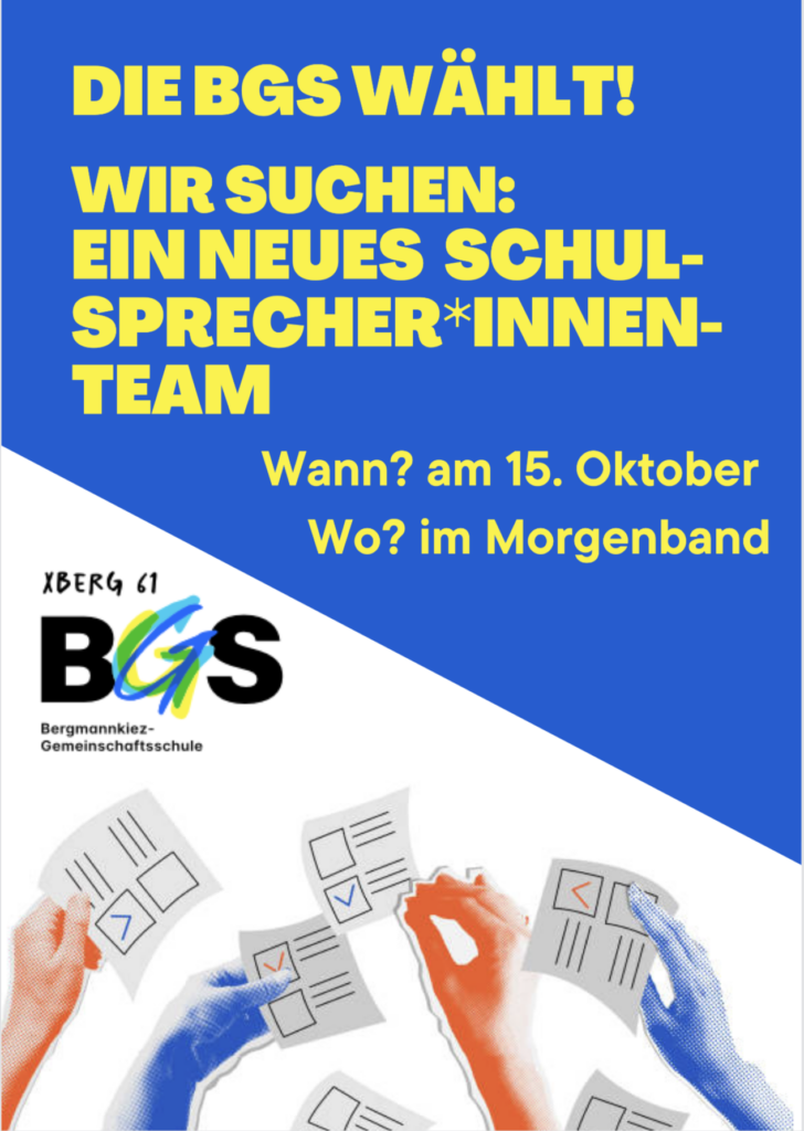 In der SEK I und II treten insgesamt fünf Teams bzw. Kandidat:innen an, ebenso wie in der Grundstufe (Jahrgang 1–6). Beim Wahlkampftreffen am 1. Oktober haben die Teams fleißig Wahlwerbespots und Plakate gestaltet. Diese könnt ihr jetzt in der Schule bestaunen, und im Morgenband wird im Unterricht gemeinsam darüber gesprochen.